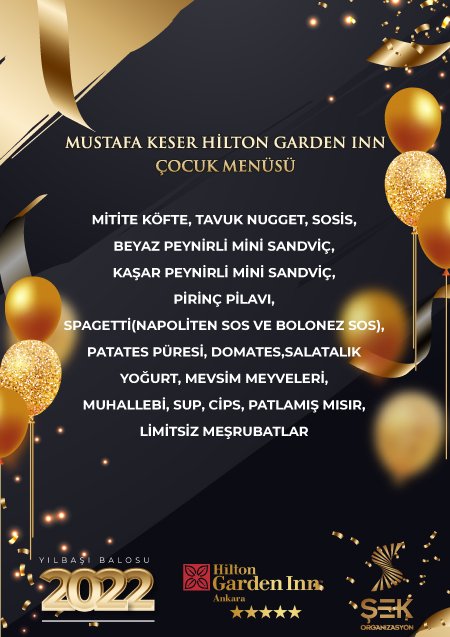 Hilton Garden Inn 2022 Yılbaşı Çocuk Menüsü