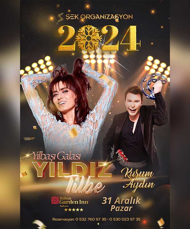 2024 yılbaşı gecesi, Hilton Garden Inn Hotel, 2024 yılbaşı programıyla Ankara’da Yıldız Tilbe ve Kuşum Aydın ile unutulmaz bir geceye imza atıyor. Çok yakında, Ankara’nın en gözde yılbaşı etkinliklerinden biri olan bu programla yeni yıla coşkuyla girmek için sizi bekliyoruz.