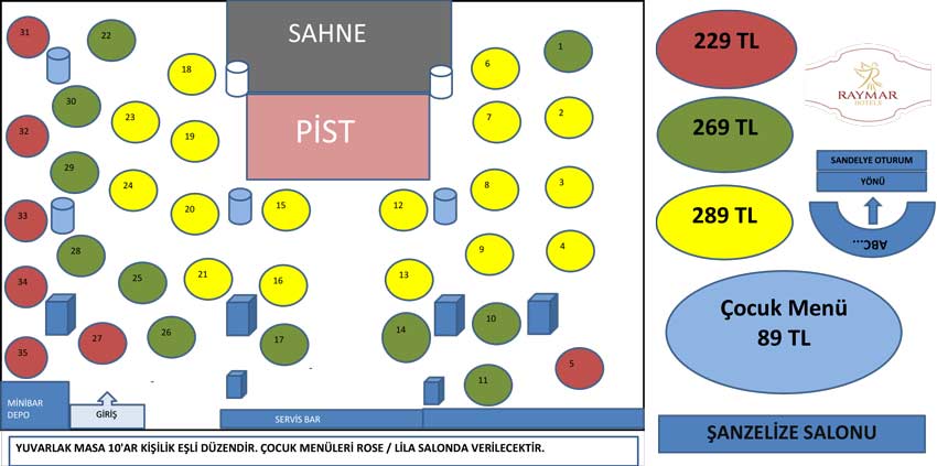 Kişi başı fiyatı oturma düzenine göre 229 TL, 269 TL 289 TL olarak değişiklik gösteriyor.