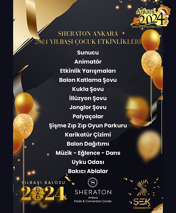 2024’e coşkuyla girmenin en eğlenceli yolu olan bu yılbaşı gala programını kaçırmamak için rezervasyonlarınızı şimdi yapın. Şek Organizasyon ve Sheraton Otel, sizi eğlence, müzik ve lezzet dolu bir geceye davet ediyor. Yeni yıla unutulmaz bir başlangıç yapmak için acele edin, yerler sınırlı!