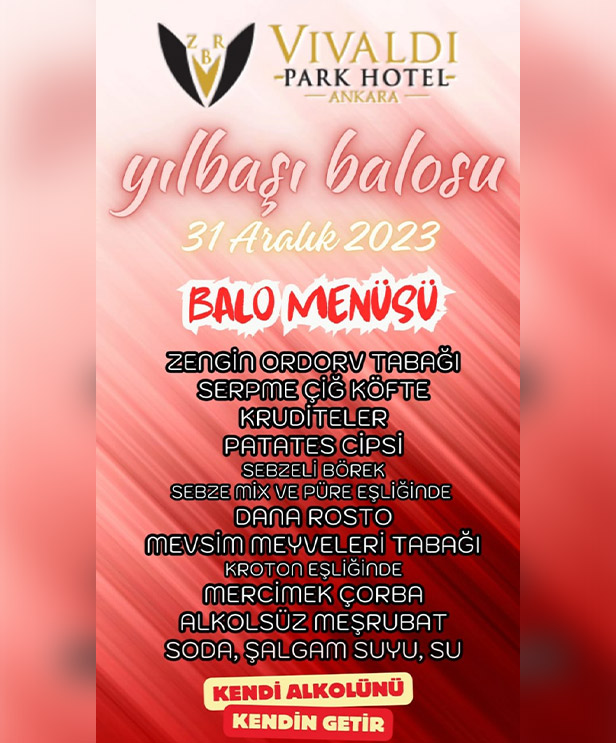 Vivaldi Park Otel Yılbaşı Menüsü 2024